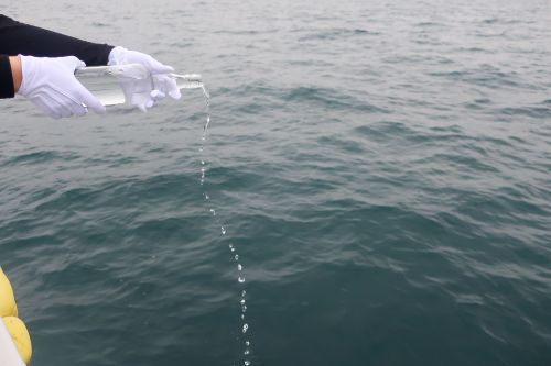 散骨する前に手を合わせて祈り、感謝の気持ちを込めて献水をします。