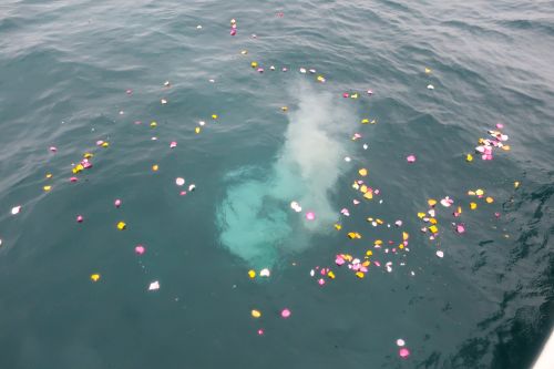 実際に散骨を行うと、ご遺骨が海へと広がっていく様子はとても美しく、故人様が自然へ還っていくことを感じられる、穏やかな時間となりました。
